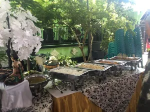 - Penyajian: Gunakan chafing dish (pemanas makanan) untuk menu utama, atau wadah keramik/kaca yang estetik untuk tampilan lebih rapi.